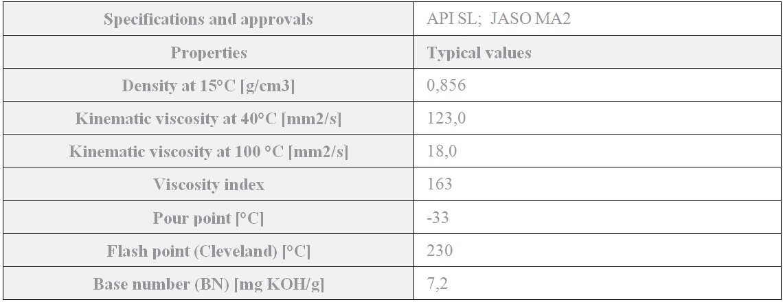 Synthetic motorcycle engine oil formulated with the most advanced additive technology. Forms a thick lubricant film on the surface of engine parts, reduces wear and and prevents corrsion. Provides perfect engine protection even under extreme loads. Ensures optimum friction in motorcycle wet clutches.